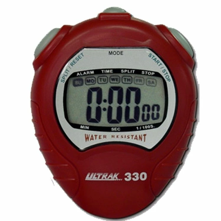 Comfortable to hold, easy to read, and simple to operate, the Ultrak 330 Jumbo Display Stopwatch is the most functional, user-friendly stopwatch on the market. This water-resistant stopwatch features highly-visible, half-inch digits for easy readability.